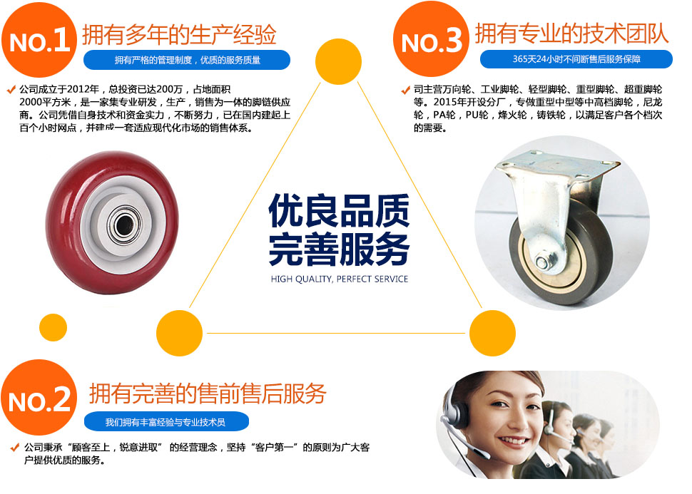 1、 工業腳輪:即工業用輪子,分工業橡膠輪、工業PP輪、工業PU輪、工業TPR輪, 工業...